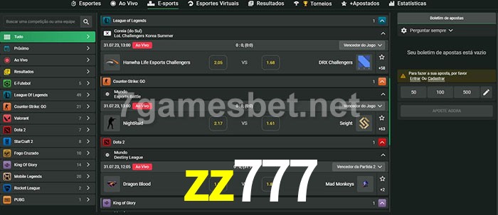 O zz777 oferece uma grande seleção de opções de apostas em e-sports com probabilidades competitivas
